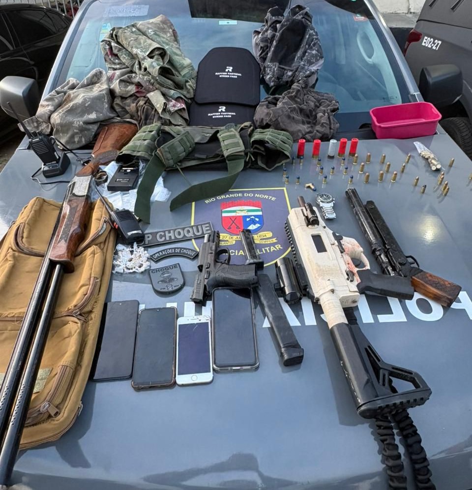 Tiroteio com a PM termina com quatro suspeitos baleados e arsenal de guerra apreendido no RN