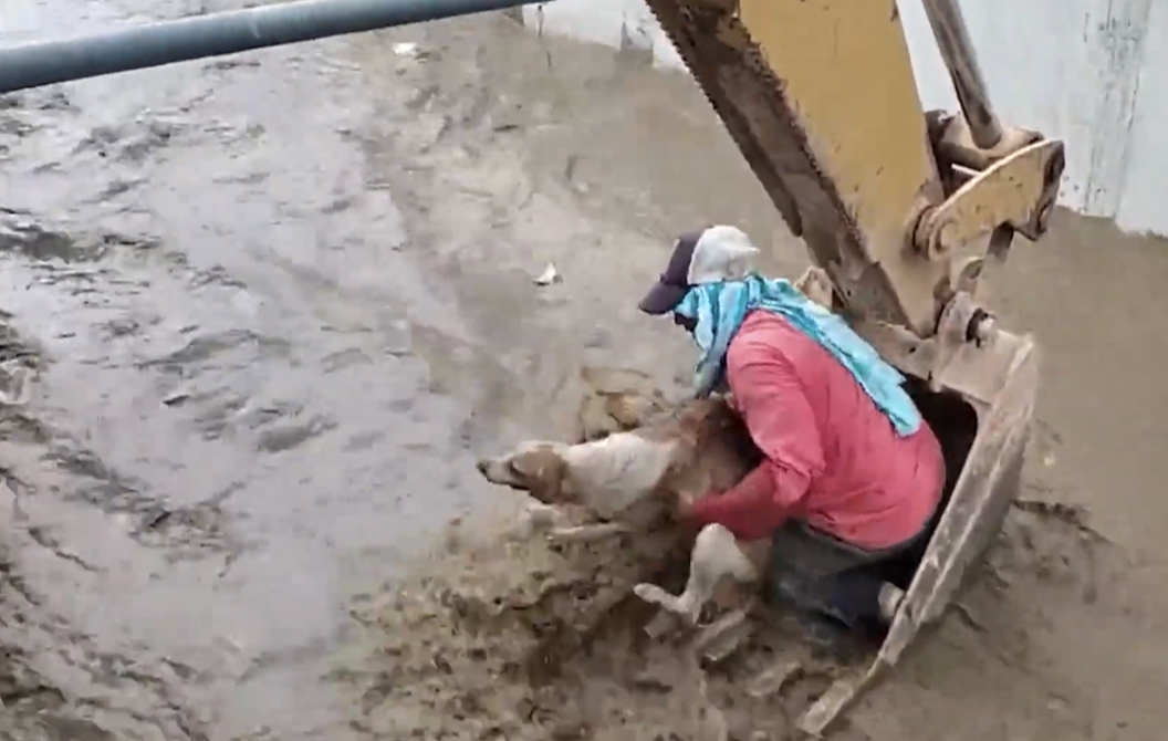 Trabalhadores usam retroescavadeira para resgatar cão no Equador; Veja vídeo