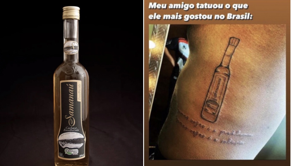 Turista irlandês visita Brasil, se encanta com cachaça Samanaú e tatua garrafa da bebida