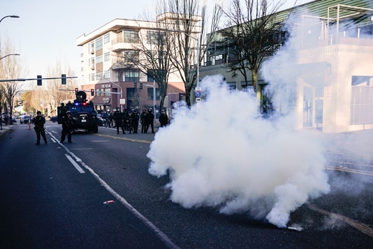 Em um vídeo publicado nas redes sociais, um tiro pode ser ouvido no momento em que manifestantes contrários a Trump avançam em direção aos apoiadores do presidente em Olympia. Após o disparo, um integrante do grupo contrário a Trump cai no chão e outras pessoas pedem ajuda. Em outra gravação, um homem portando uma arma foge do local do confronto.