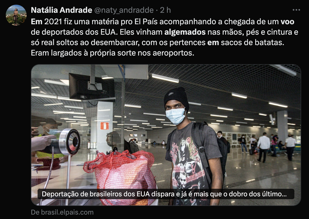 De acordo com a imprensa americana, uso de algemas contra deportados dos Estados Unidos para qualquer outro país é medida de segurança dentro da aeronave.