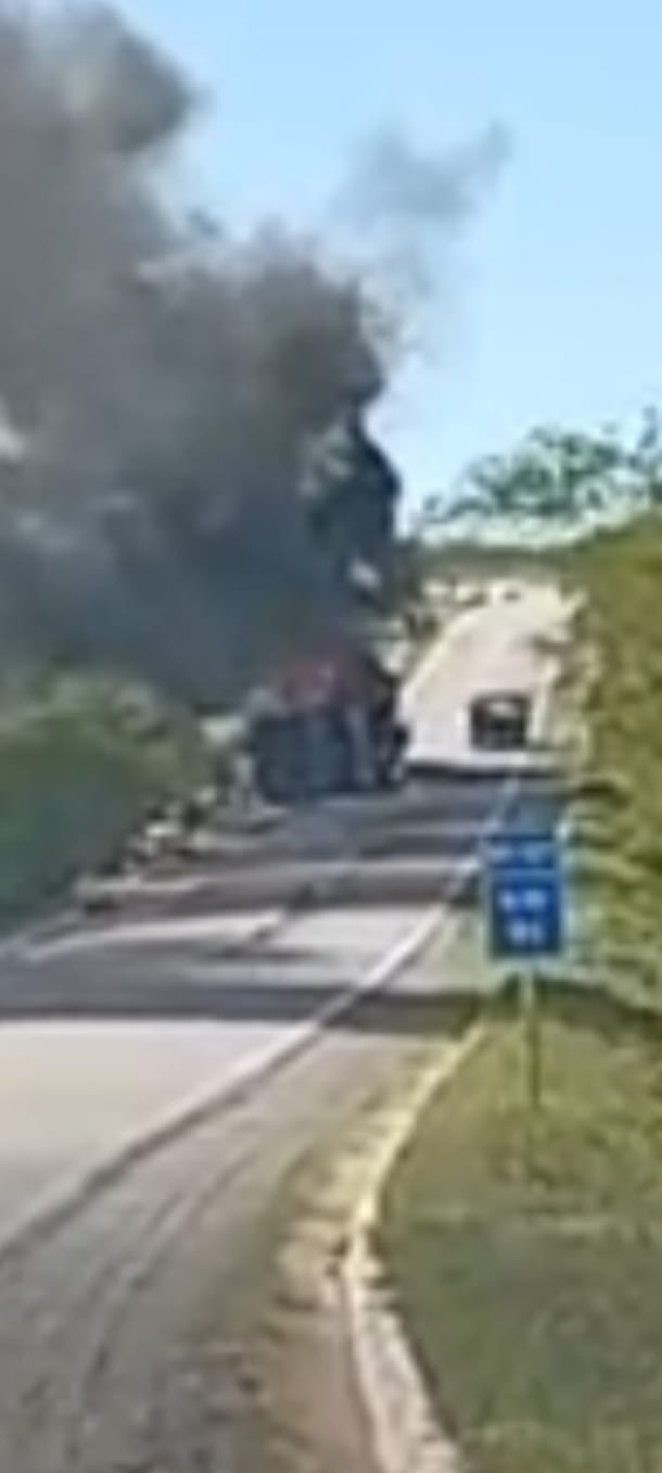 O veículo, segundo informações obtidas pele equipe do blog Jair Sampaio, é um caminhão. Ainda não temos informação se houve feridos.