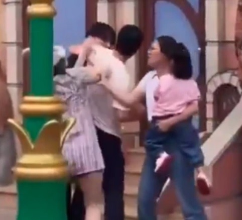 Um vídeo que circula nas redes sociais mostra dois homens, um vestido de preto e outro de branco, brigando enquanto uma mulher com um chapéu de orelha de coelho se intromete na briga e agarra um deles pelo pescoço. Uma mulher com bebê no colo tentar ajudar o companheiro, mas é atacada pela visitante de chapéu de orelha de coelho.