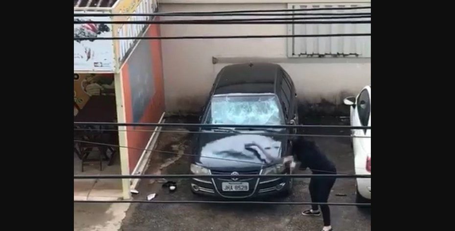 VÍDEO: com gritos de “Zé Piqu!nh@”, mulher destrói carro do companheiro