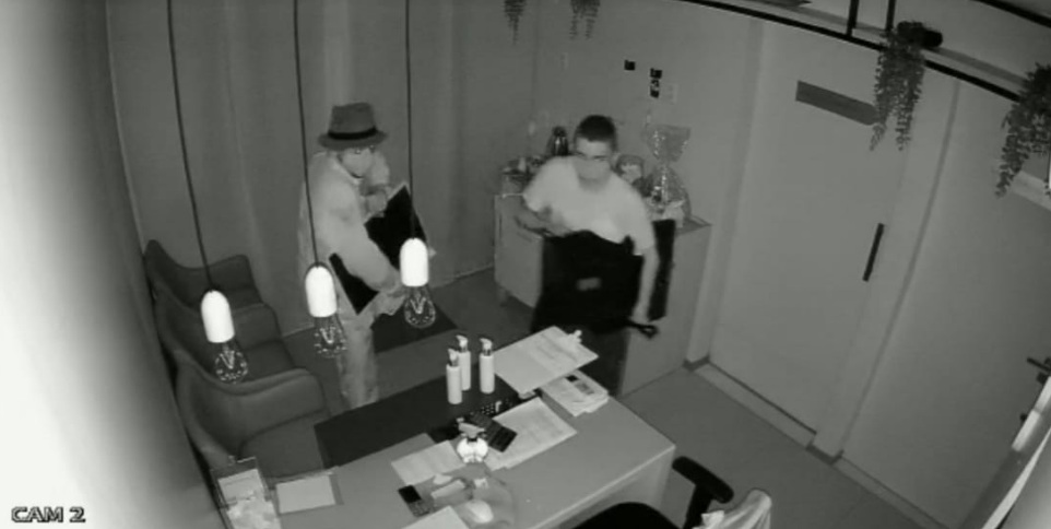 Os vídeos do circuito de segurança, cedidas pelo estabelecimento, mostram a dupla chegando ao local em um carro, modelo corsa, de cor prata. O veículo ficou estacionado há alguns metros da clínica. Seguindo a pé, os homens foram até o local e utilizaram ferramentas para romper a tranca de uma porta de vidro. Ação na parte externa da clínica durou cerca de dois minutos e meio.