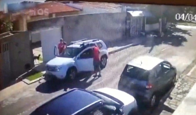 As imagens das câmeras de segurança flagraram um assalto que ocorreu, nessa segunda-feira (04), no bairro Pitimbu, zona sul de Natal. Uma família foi alvo dos criminosos e tiveram o carro roubado em frente à própria casa. O veículo, modelo Duster, de cor branca, foi localizado algumas horas depois já em outro bairro.