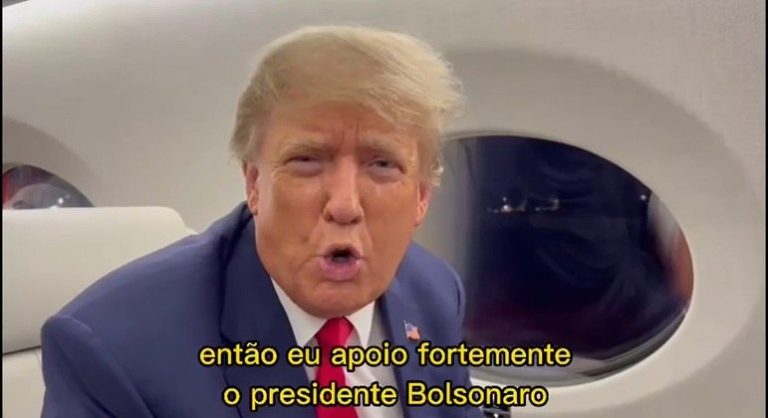 O ex-presidente dos Estados Unidos Donald Trump divulgou um vídeo em que, de dentro de um avião, pede votos para a reeleição do presidente Jair Bolsonaro (PL). “Para as pessoas do Brasil: vocês têm uma grande oportunidade de reeleger um líder fantástico, um homem fantástico, um dos maiores presidentes do mundo — presidente Bolsonaro”, diz o empresário.