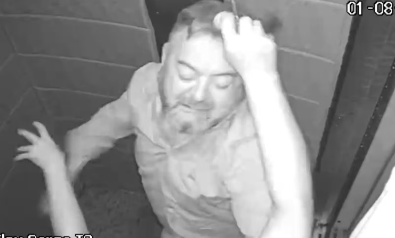 Os golpes continuam dentro do elevador. A mulher tenta se defender dos ataques, mas cai no chão e continua sendo atingida. A vítima não procurou a polícia e foi para um hospital, onde ficou internada por cinco dias.