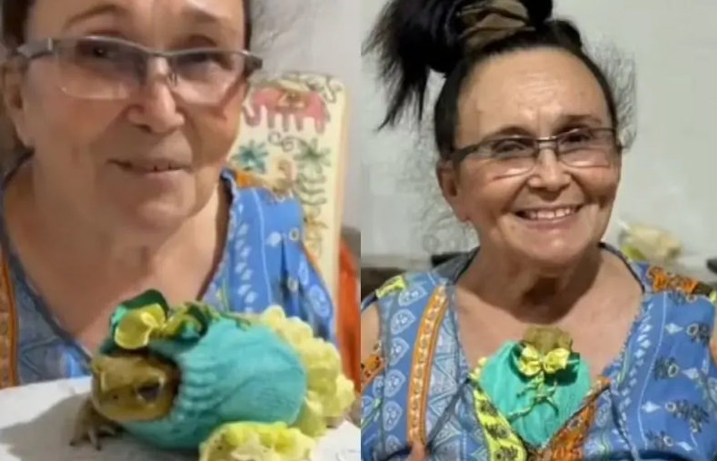 VÍDEO: Idosa ‘adota’ sapa que entrava na casa dela, batiza e veste com roupinhas em Florânia