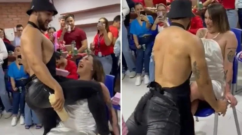 A juíza Vivian Polanía, da cidade de Cucuta, na Colômbia, se envolveu em uma polêmica após ser flagrada recebendo uma dança sensual de um homem sem camisa no tribunal onde trabalha.