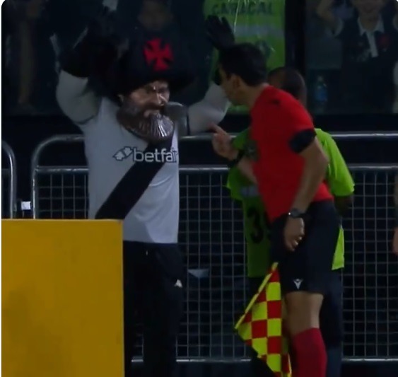 O Almirante, mascote do Vasco, fez uma ‘catimba’ e levou uma bronca do bandeirinha durante a vitória da equipe carioca sobre o Cuiabá por 1 a 0, nesta quinta-feira (24), em jogo atrasado pela 19ª rodada do Brasileirão.