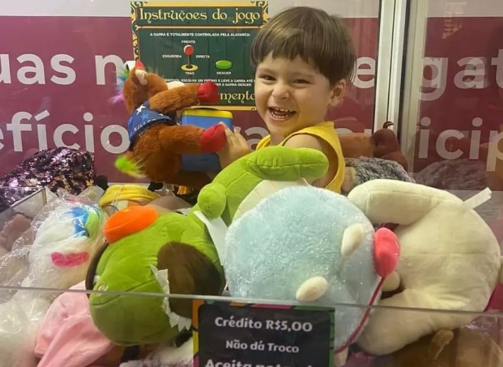 Um menino de dois anos viveu uma aventura no Norte Shopping na noite da última terça-feira (16). Samuel, de 2 anos, conseguiu entrar na máquina de pegar pelúcias do centro de compras.