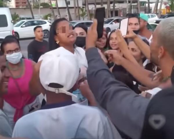 Em seu perfil no Instagram, Carlinhos contou que estava fazendo um passeio nos atrativos turísticos de verão instalados pela Prefeitura, quando uma multidão se juntou para acompanhá-lo. A mulher se aproximou quando ele parou em frente a uma barraca de praia para conversar e fazer fotos.