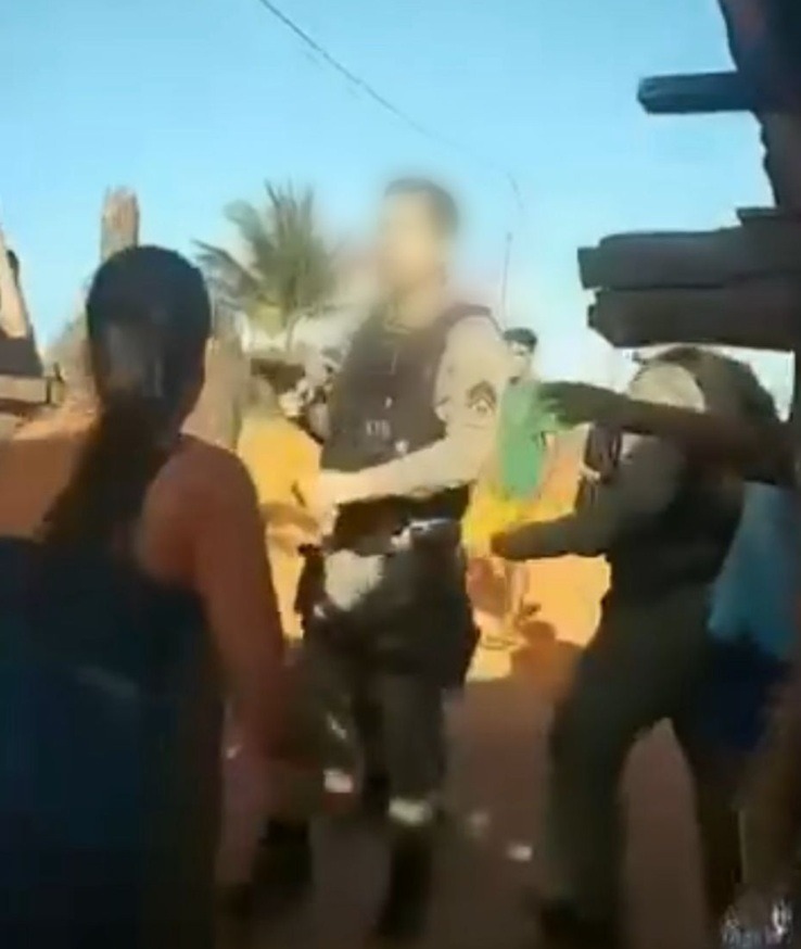 Enquanto os policiais prestavam orientação à responsável, um homem que estava no local começou a proferir ofensas contra a equipe. Mesmo após advertências, ele continuou com as agressões verbais e recebeu voz de prisão. Nesse momento, segundo a PM, o homem e um familiar passaram a investir contra os policiais, portando um facão e um pedaço de madeira.
