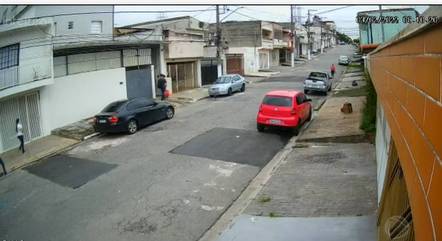 Nas imagens de uma câmera de segurança, é possível ver o policial à paisana, com sua filha no colo e sua companheira mexendo no porta-malas de um carro preto.