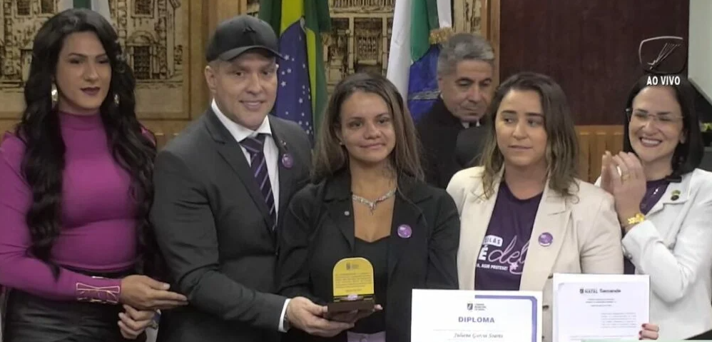 Vítima de tentativa de feminício, Juliana Soares recebe comenda Maria da Penha em Natal